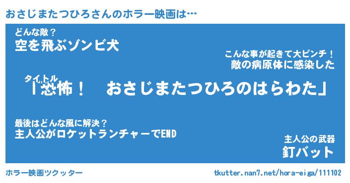 | 胡散臭い通販商品みたいなあだ名 | 『必ず成功するブレスレット…その名も「おさじまたつひろ」』 |