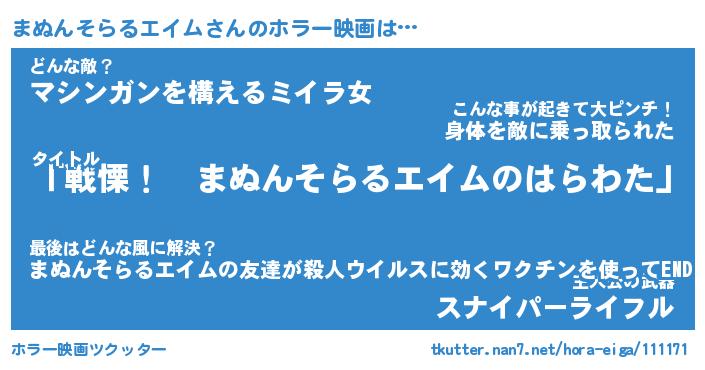 | 欧米人風あだ名 | 『マイケルまぬんそらるエイム』 |