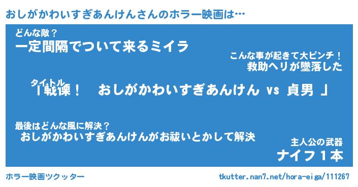 | 胡散臭い通販商品みたいなあだ名 | 『億万長者になれる霊験あらたかなお札…その名も「おしがかわいすぎあんけん」』 |
