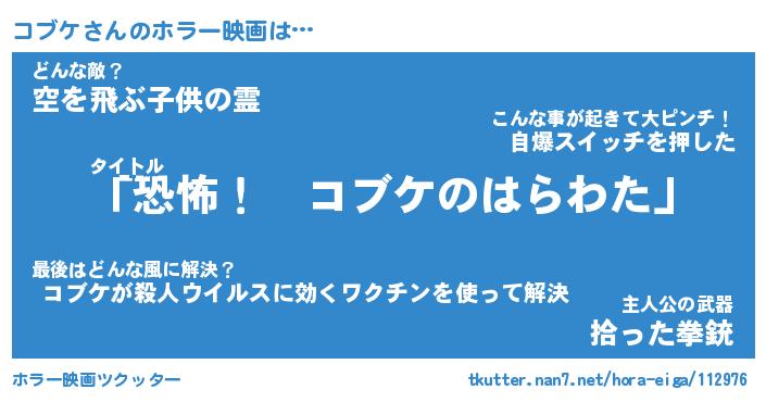 | ヒーロー風カッコイイあだ名 | 『スーパーコブケ』『ウルトラコブケマン』 |