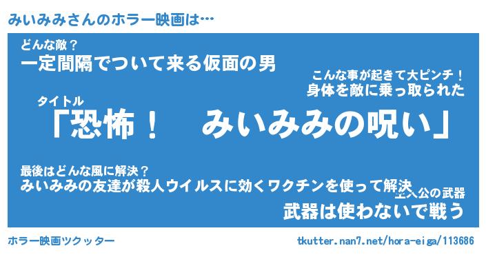 | 男性向けラノベタイトル風あだ名 | 『みいみみの憂鬱』 |