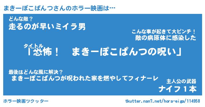 | 欧米人風あだ名 | 『マイケルまきーぽこぱんつ』 |