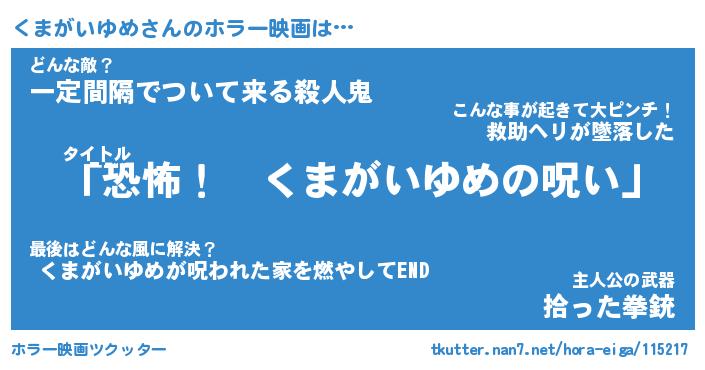 | 男性向けラノベタイトル風あだ名 | 『くまがいゆめの憂鬱』 |