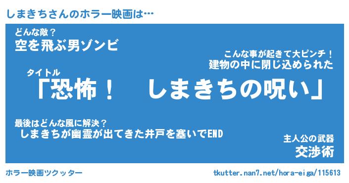 | 男性向けラノベタイトル風あだ名 | 『しまきちの憂鬱』 |