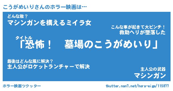 | 伝説のあだ名 | 『不死鳥のスナイパーこうがめいり』 |