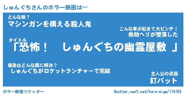 | 伝説のあだ名 | 『伝説のスナイパーしゅんぐち』 |