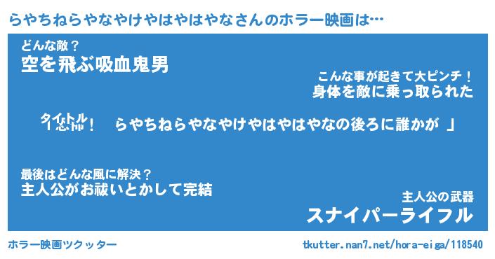 | 男性向けラノベタイトル風あだ名 | 『らやちねらやなやけやはやはやなの憂鬱』 |