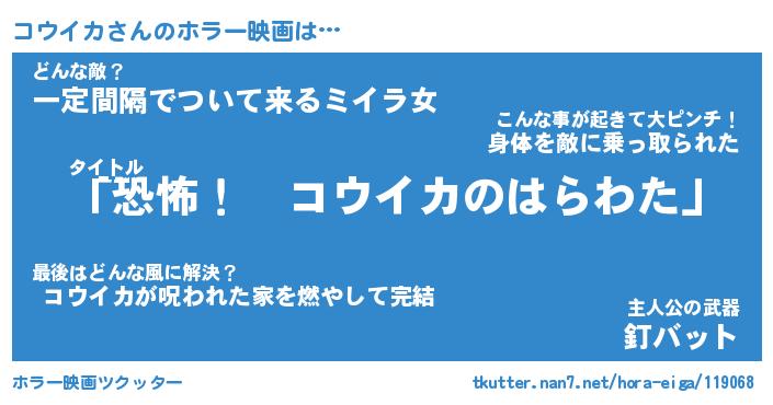 | 男性向けラノベタイトル風あだ名 | 『コウイカの憂鬱』 |
