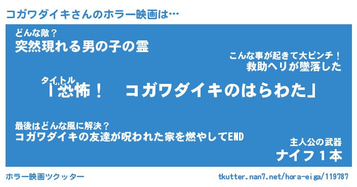 | 男性向けラノベタイトル風あだ名 | 『コガワダイキの憂鬱』 |