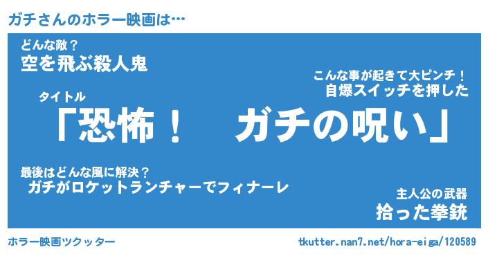 | 男性向けラノベタイトル風あだ名 | 『ガチの憂鬱』『ノーゲーム・ノーガチ』 |
