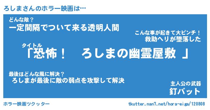 | 男性向けラノベタイトル風あだ名 | 『ろしまの憂鬱』 |
