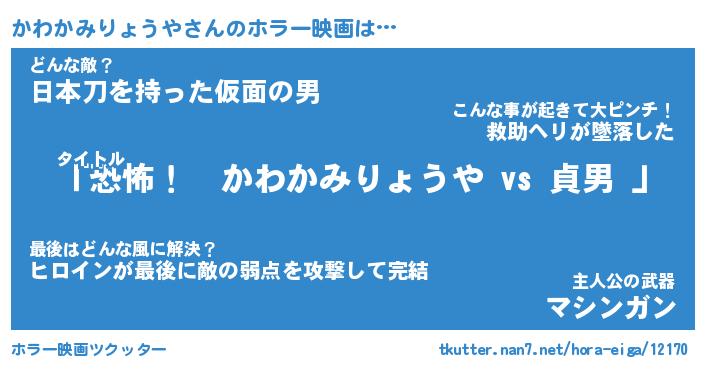 | 男性向けラノベタイトル風あだ名 | 『かわかみりょうやの憂鬱』 |