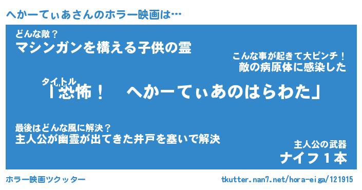 | 2回繰り返すあだ名 | 『へかへか』『へへかか』『ぬれぬれ』 |