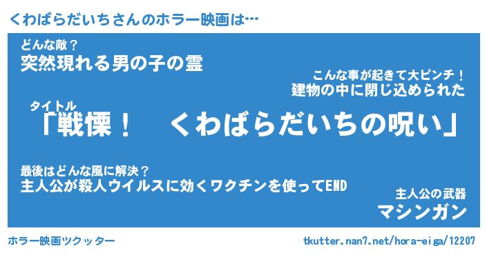 | ツイッター | くわばらだいちさんのツイッターID『namakemono_star』 |