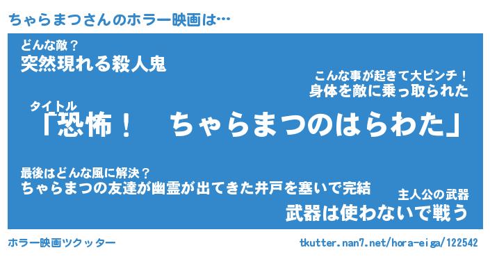 | 男性向けラノベタイトル風あだ名 | 『ちゃらまつの憂鬱』 |