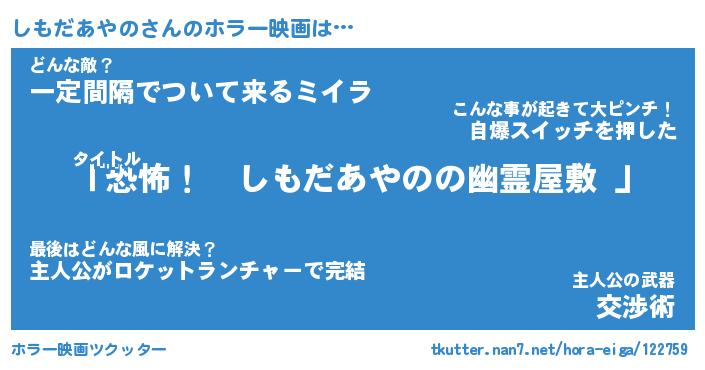 | 胡散臭い通販商品みたいなあだ名 | 『必ず成功する霊験あらたかなお札…その名も「しもだあやの」』 |