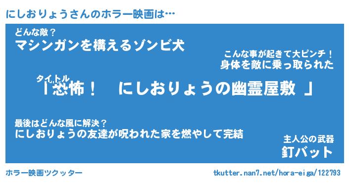 | 男性向けラノベタイトル風あだ名 | 『にしおりょうの憂鬱』 |