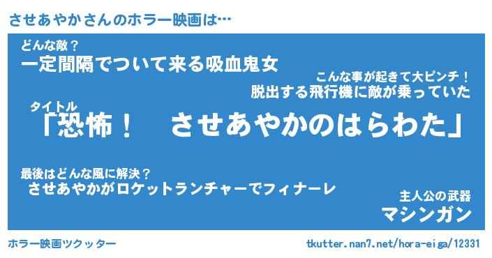 | ヒーロー風カッコイイあだ名 | 『スーパーサセアヤカ』『魔戒騎士サセ』 |