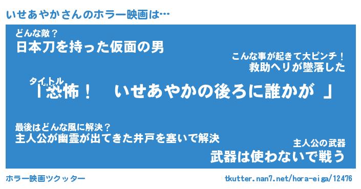 | ヒーロー風カッコイイあだ名 | 『スーパーイセアヤカ』『銀牙騎士イセ』 |