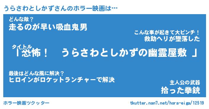 | 男性向けラノベタイトル風あだ名 | 『うらさわとしかずの憂鬱』 |