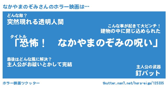 | 男性向けラノベタイトル風あだ名 | 『なかやまのぞみの憂鬱』 |