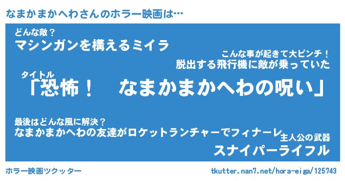 | 男性向けラノベタイトル風あだ名 | 『なまかまかへわの憂鬱』 |