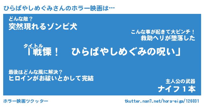 | 胡散臭い通販商品みたいなあだ名 | 『億万長者になれるブレスレット…その名も「ひらばやしめぐみ」』 |