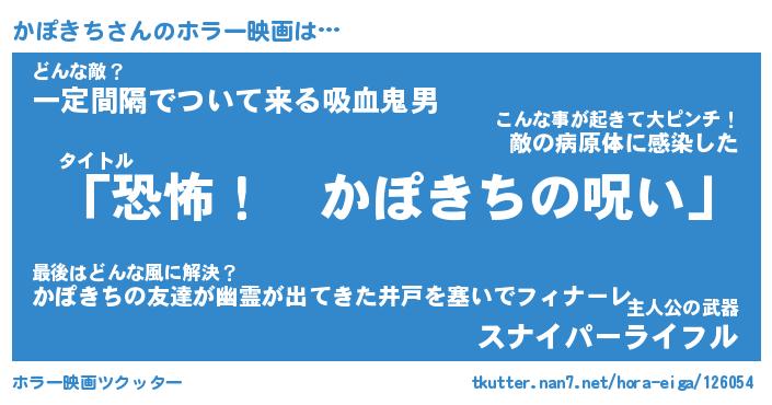 | 男性向けラノベタイトル風あだ名 | 『かぽきちの憂鬱』 |