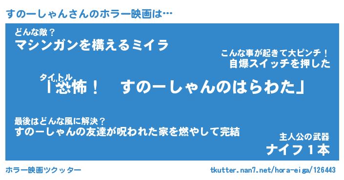 | 胡散臭い通販商品みたいなあだ名 | 『必ず成功するブレスレット…その名も「すのーしゃん」』 |