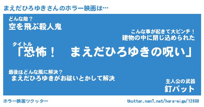| 男性向けラノベタイトル風あだ名 | 『まえだひろゆきの憂鬱』 |