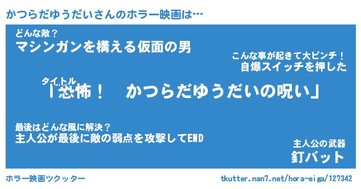 | ツイッター | かつらだゆうだいさんのツイッターID『kikurage_star』 |