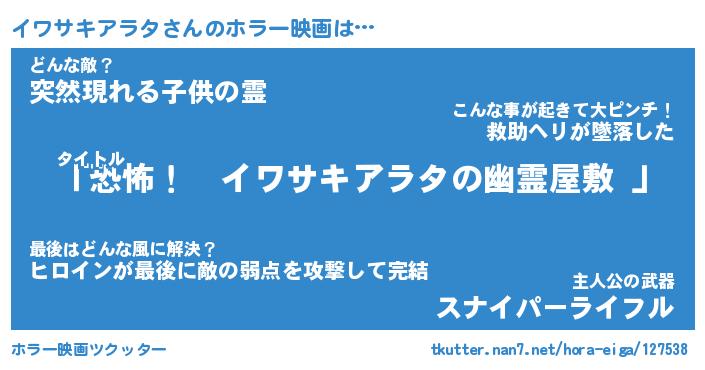 | 伝説のあだ名 | 『伝説のスナイパーイワサキアラタ』 |