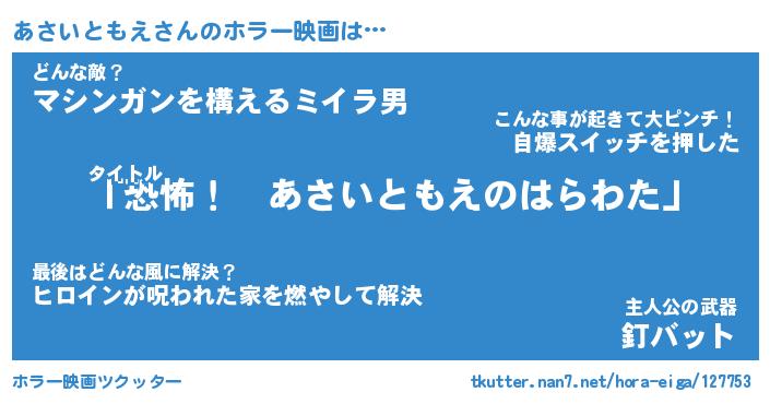 | 胡散臭い通販商品みたいなあだ名 | 『必ず成功するブレスレット…その名も「あさいともえ」』 |
