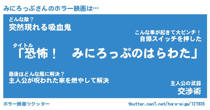 | 男性向けラノベタイトル風あだ名 | 『みにろっぷの憂鬱』 |