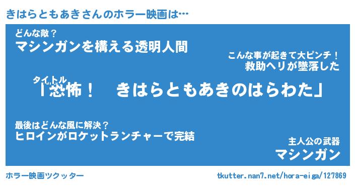 | 胡散臭い通販商品みたいなあだ名 | 『必ず成功するブレスレット…その名も「きはらともあき」』 |