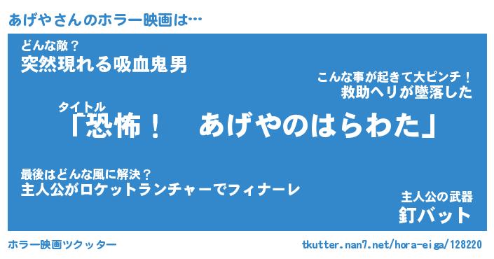 | ヒーロー風カッコイイあだ名 | 『スーパーアゲヤ』『ウルトラあげやマン』 |