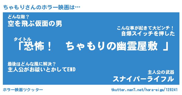 | 男性向けラノベタイトル風あだ名 | 『ちゃもりの憂鬱』 |