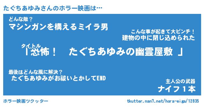 | 胡散臭い通販商品みたいなあだ名 | 『必ず成功する霊験あらたかなお札…その名も「たぐちあゆみ」』 |