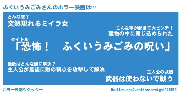 | 男性向けラノベタイトル風あだ名 | 『ふくいうみごみの憂鬱』 |