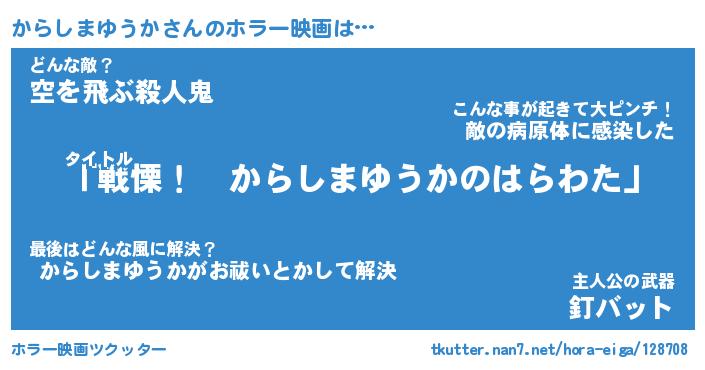 | 胡散臭い通販商品みたいなあだ名 | 『億万長者になれるブレスレット…その名も「からしまゆうか」』 |