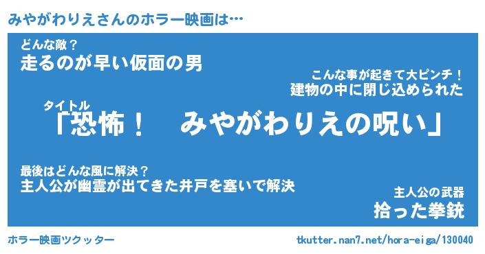 | 男性向けラノベタイトル風あだ名 | 『みやがわりえの憂鬱』 |