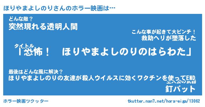 | 胡散臭い通販商品みたいなあだ名 | 『必ず成功するブレスレット…その名も「ほりやまよしのり」』 |