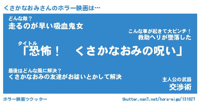 | 男性向けラノベタイトル風あだ名 | 『くさかなおみの憂鬱』 |