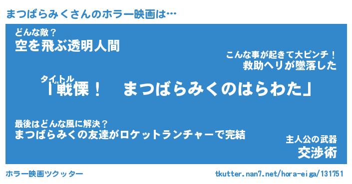 | 胡散臭い通販商品みたいなあだ名 | 『億万長者になれるブレスレット…その名も「まつばらみく」』 |
