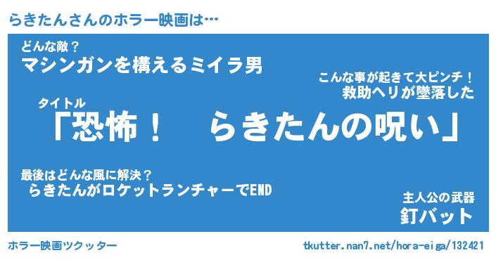 | 男性向けラノベタイトル風あだ名 | 『らきたんの憂鬱』 |