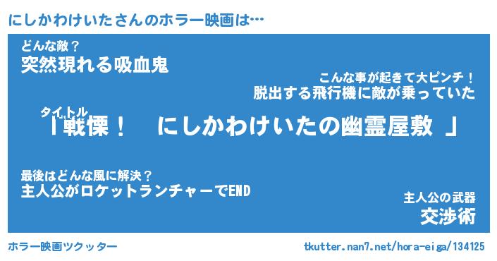 | 胡散臭い通販商品みたいなあだ名 | 『モテモテ間違いなし霊験あらたかなお札…その名も「にしかわけいた」』 |