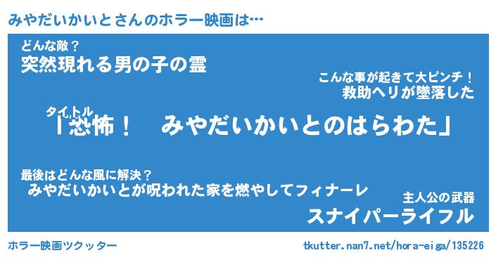 | 男性向けラノベタイトル風あだ名 | 『みやだいかいとの憂鬱』 |