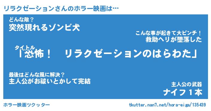 | 男性向けラノベタイトル風あだ名 | 『リラクゼーションの憂鬱』 |