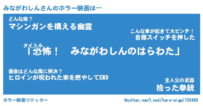 | 男性向けラノベタイトル風あだ名 | 『みながわしんの憂鬱』 |