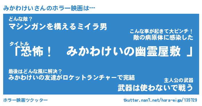 | 胡散臭い通販商品みたいなあだ名 | 『必ず成功する霊験あらたかなお札…その名も「みかわけい」』 |